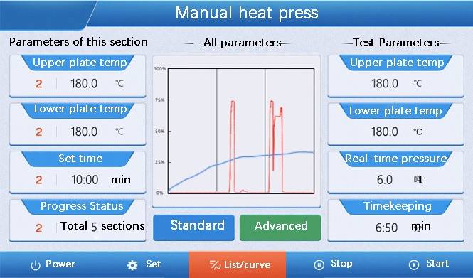 - Standard interface: You can set the upper and lower plate heating temperature and constant temperature time separately in this interface.
