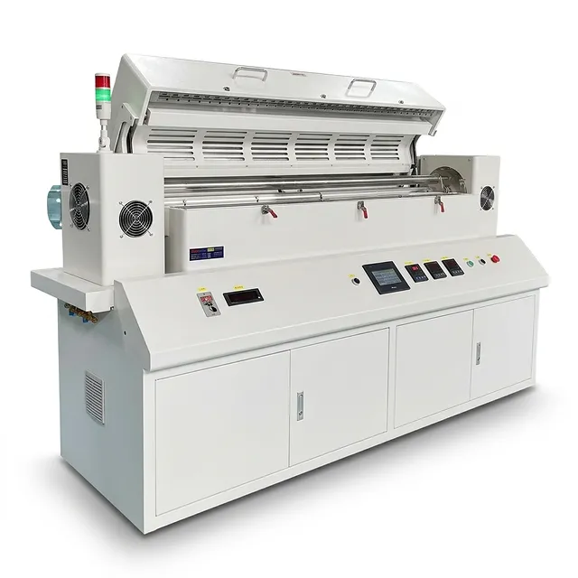 The gradient tube furnace consists of a long, cylindrical tube that is divided into a series of heated zones. Each zone is equipped with its own heating element and temperature control system, which allows the temperature of each zone to be independently controlled.